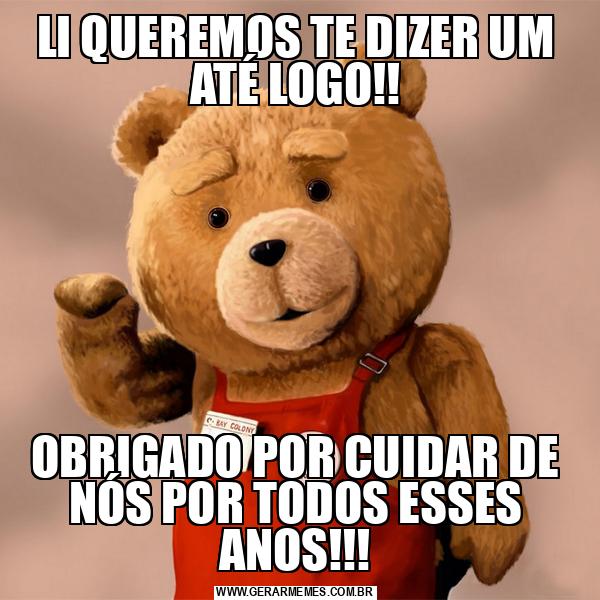 LI QUEREMOS TE DIZER UM ATÉ LOGO!! OBRIGADO POR CUIDAR DE NÓS POR TODOS ESSES ANOS!!!