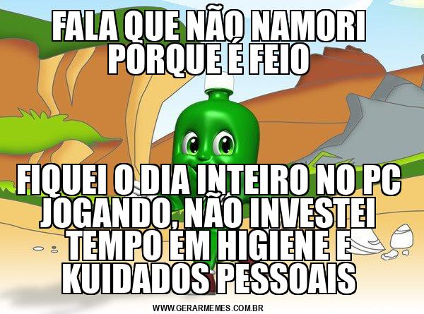 FALA QUE NÃO NAMORI PORQUE É FEIO FIQUEI O DIA INTEIRO NO PC JOGANDO, NÃO INVESTEI TEMPO EM HIGIENE E KUIDADOS PESSOAIS