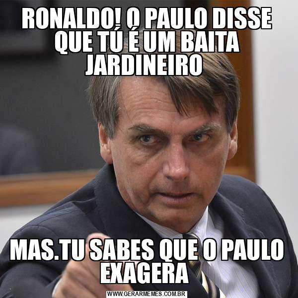 RONALDO! O PAULO DISSE QUE TÚ É UM BAITA JARDINEIRO MAS.TU SABES QUE O PAULO EXAGERA