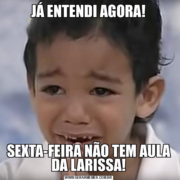 JÁ ENTENDI AGORA! SEXTA-FEIRA NÃO TEM AULA DA LARISSA!