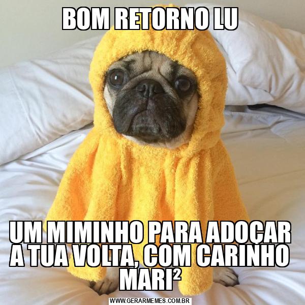 BOM RETORNO LU UM MIMINHO PARA ADOÇAR A TUA VOLTA, COM CARINHO MARI²