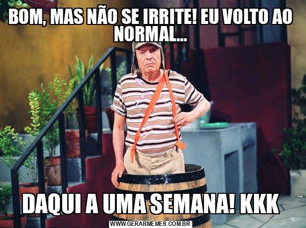 BOM, MAS NÃO SE IRRITE! EU VOLTO AO NORMAL… DAQUI A UMA SEMANA! KKK