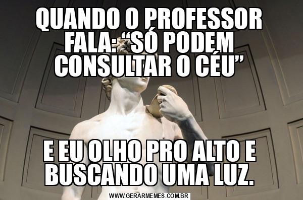 QUANDO O PROFESSOR FALA: “SÓ PODEM CONSULTAR O CÉU” E EU OLHO PRO ALTO E BUSCANDO UMA LUZ.