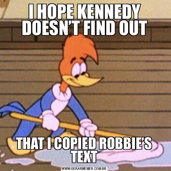 I HOPE KENNEDY DOESN’T FIND OUT THAT I COPIED ROBBIE’S TEXT