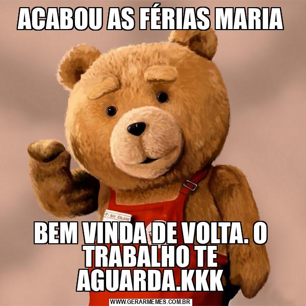 ACABOU AS FÉRIAS MARIA BEM VINDA DE VOLTA. O TRABALHO TE AGUARDA.KKK