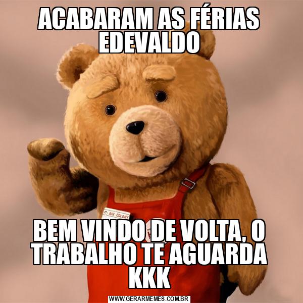 ACABARAM AS FÉRIAS EDEVALDO BEM VINDO DE VOLTA, O TRABALHO TE AGUARDA KKK