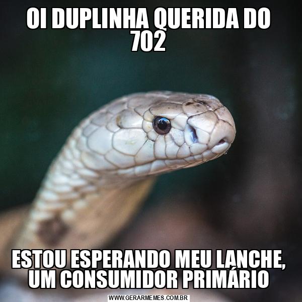 OI DUPLINHA QUERIDA DO 702 ESTOU ESPERANDO MEU LANCHE, UM CONSUMIDOR PRIMÁRIO