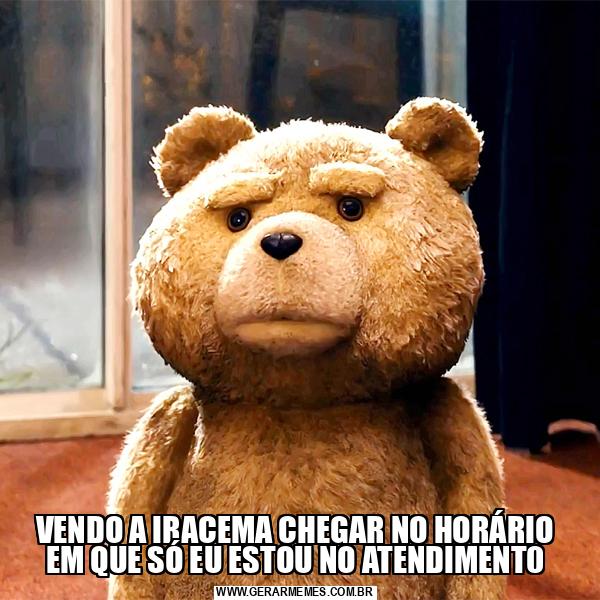 VENDO A IRACEMA CHEGAR NO HORÁRIO EM QUE SÓ EU ESTOU NO ATENDIMENT0