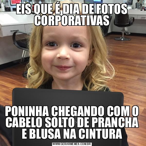EIS QUE É DIA DE FOTOS CORPORATIVAS PONINHA CHEGANDO COM O CABELO SOLTO DE PRANCHA E BLUSA NA CINTURA