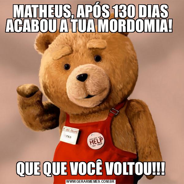 MATHEUS, APÓS 130 DIAS ACABOU A TUA MORDOMIA! QUE QUE VOCÊ VOLTOU!!!