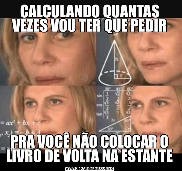 CALCULANDO QUANTAS VEZES VOU TER QUE PEDIR PRA VOCÊ NÃO COLOCAR O LIVRO DE VOLTA NA ESTANTE