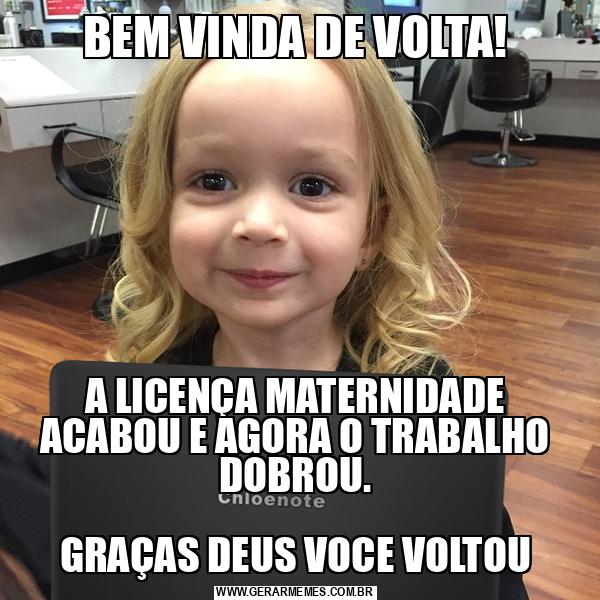 BEM VINDA DE VOLTA! A LICENÇA MATERNIDADE ACABOU E AGORA O TRABALHO DOBROU. GRAÇAS DEUS VOCE VOLTOU