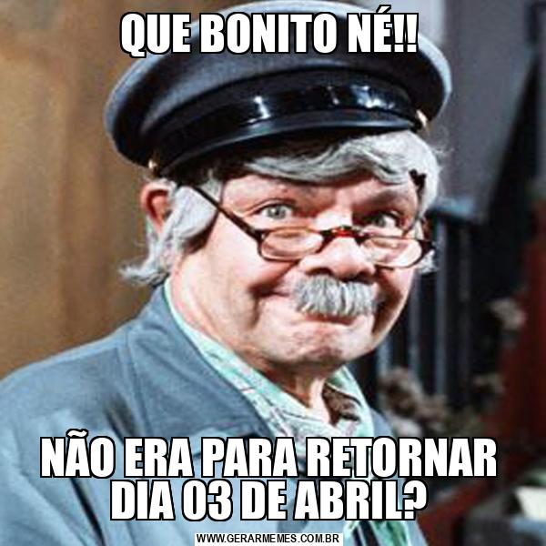 QUE BONITO NÉ!! NÃO ERA PARA RETORNAR DIA 03 DE ABRIL?