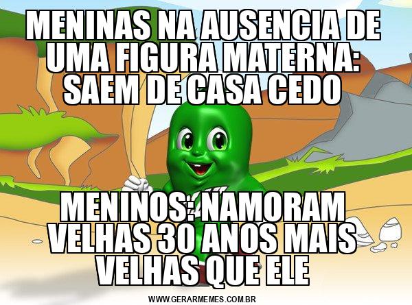 MENINAS NA AUSENCIA DE UMA FIGURA MATERNA: SAEM DE CASA CEDO MENINOS: NAMORAM VELHAS 30 ANOS MAIS VELHAS QUE ELE