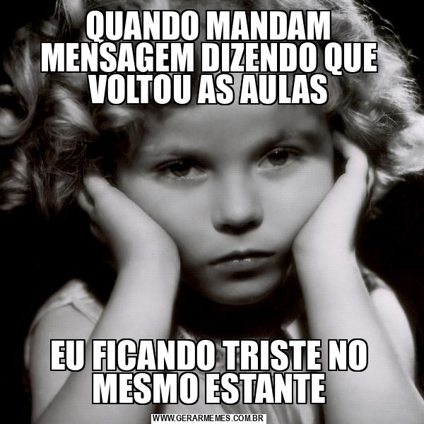QUANDO MANDAM MENSAGEM DIZENDO QUE VOLTOU AS AULAS EU FICANDO TRISTE NO MESMO ESTANTE