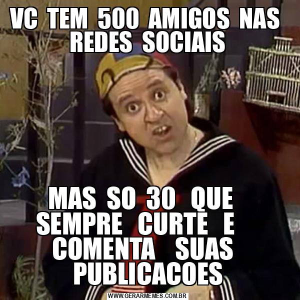 VC TEM 500 AMIGOS NAS REDES SOCIAIS MAS SO 30 QUE SEMPRE CURTE E COMENTA SUAS PUBLICACOES