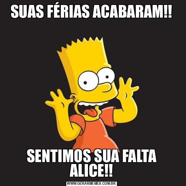 SUAS FÉRIAS ACABARAM!! SENTIMOS SUA FALTA ALICE!!