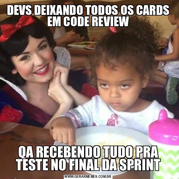 DEVS DEIXANDO TODOS OS CARDS EM CODE REVIEW QA RECEBENDO TUDO PRA TESTE NO FINAL DA SPRINT