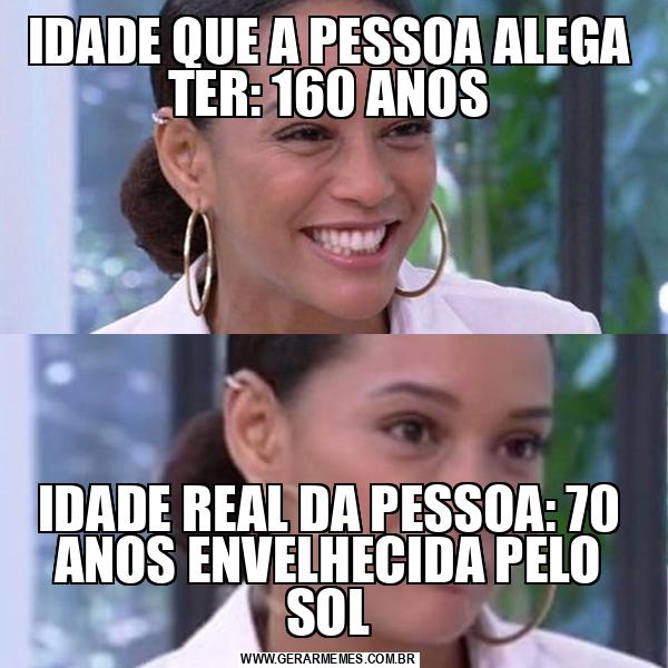 IDADE QUE A PESSOA ALEGA TER: 160 ANOS IDADE REAL DA PESSOA: 70 ANOS ENVELHECIDA PELO SOL