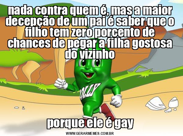 nada contra quem é, mas a maior decepção de um pai é saber que o filho tem zero porcento de chances de pegar a filha gostosa do vizinho porque ele é gay