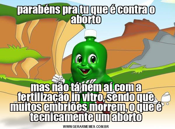 parabéns pra tu que é contra o aborto mas não tá nem aí com a fertilização in vitro, sendo que muitos embriões morrem, o que é tecnicamente um aborto