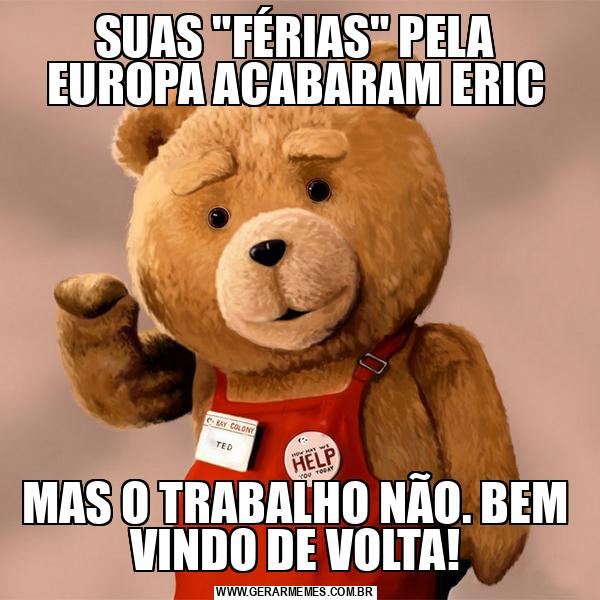 SUAS "FÉRIAS" PELA EUROPA ACABARAM ERIC MAS O TRABALHO NÃO. BEM VINDO DE VOLTA!