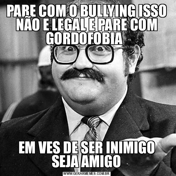 PARE COM O BULLYING ISSO NÃO E LEGAL E PARE COM GORDOFOBIA EM VES DE SER INIMIGO SEJA AMIGO