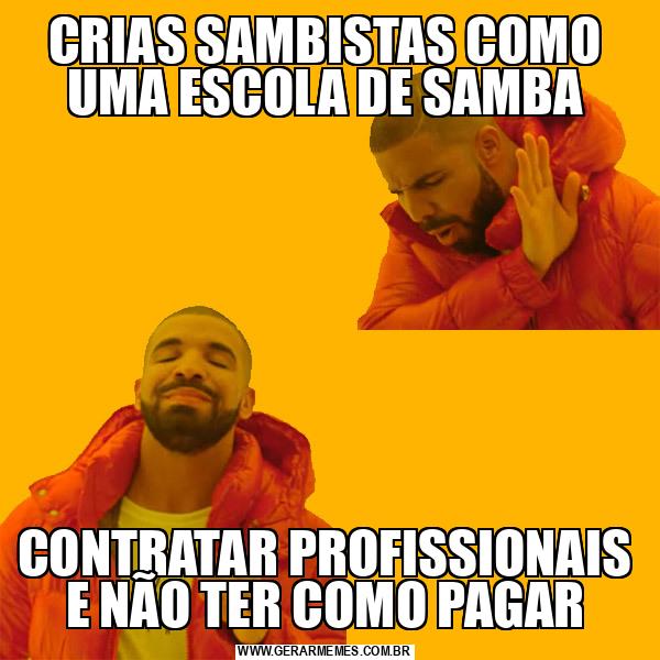 CRIAS SAMBISTAS COMO UMA ESCOLA DE SAMBA CONTRATAR PROFISSIONAIS E NÃO TER COMO PAGAR
