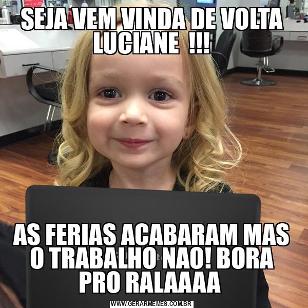 SEJA VEM VINDA DE VOLTA LUCIANE !!! AS FERIAS ACABARAM MAS O TRABALHO NAO! BORA PRO RALAAAA