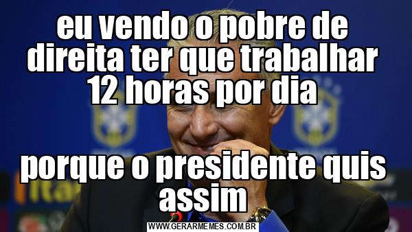 eu vendo o pobre de direita ter que trabalhar 12 horas por dia porque o presidente quis assim