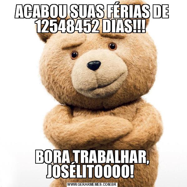 ACABOU SUAS FÉRIAS DE 12548452 DIAS!!! BORA TRABALHAR, JOSÉLITOOOO!