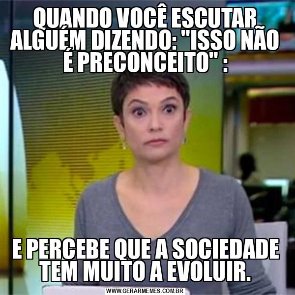 QUANDO VOCÊ ESCUTAR ALGUÉM DIZENDO: "ISSO NÃO É PRECONCEITO" : E PERCEBE QUE A SOCIEDADE TEM MUITO A EVOLUIR.