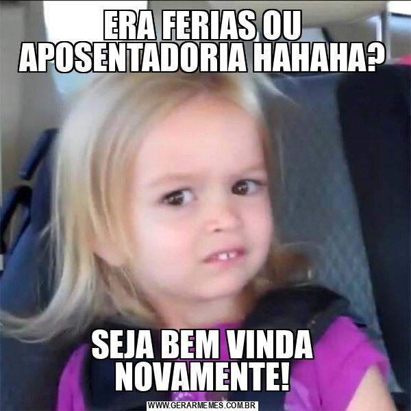 ERA FERIAS OU APOSENTADORIA HAHAHA? SEJA BEM VINDA NOVAMENTE!
