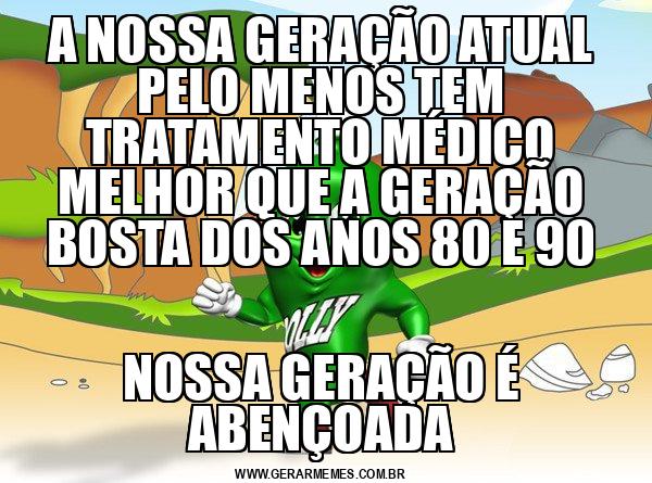 A NOSSA GERAÇÃO ATUAL PELO MENOS TEM TRATAMENTO MÉDICO MELHOR QUE A GERAÇÃO BOSTA DOS ANOS 80 E 90 NOSSA GERAÇÃO É ABENÇOADA