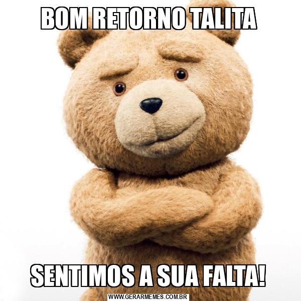 BOM RETORNO TALITA SENTIMOS A SUA FALTA!