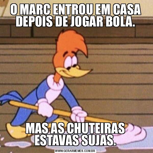 O MARC ENTROU EM CASA DEPOIS DE JOGAR BOLA. MAS AS CHUTEIRAS ESTAVAS SUJAS.