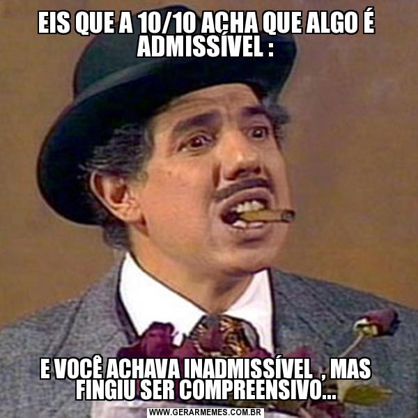 EIS QUE A 10/10 ACHA QUE ALGO É ADMISSÍVEL : E VOCÊ ACHAVA INADMISSÍVEL , MAS FINGIU SER COMPREENSIVO...