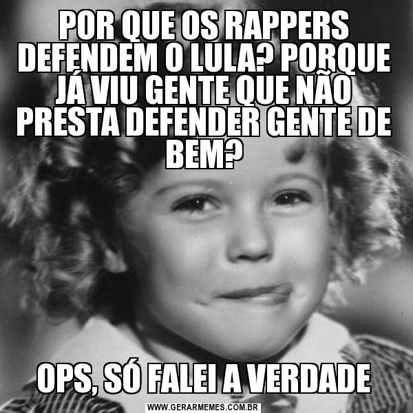 POR QUE OS RAPPERS DEFENDEM O LULA? PORQUE JÁ VIU GENTE QUE NÃO PRESTA DEFENDER GENTE DE BEM? OPS, SÓ FALEI A VERDADE