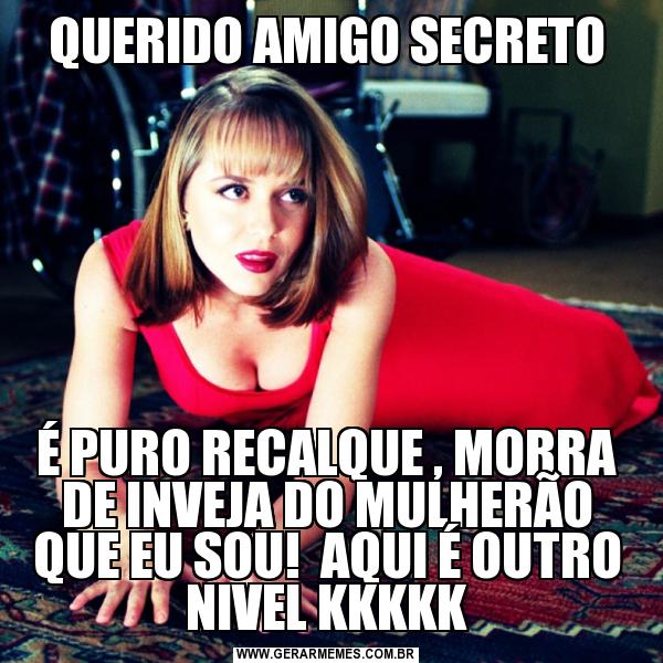 QUERIDO AMIGO SECRETO É PURO RECALQUE , MORRA DE INVEJA DO MULHERÃO QUE EU SOU! AQUI É OUTRO NIVEL KKKKK
