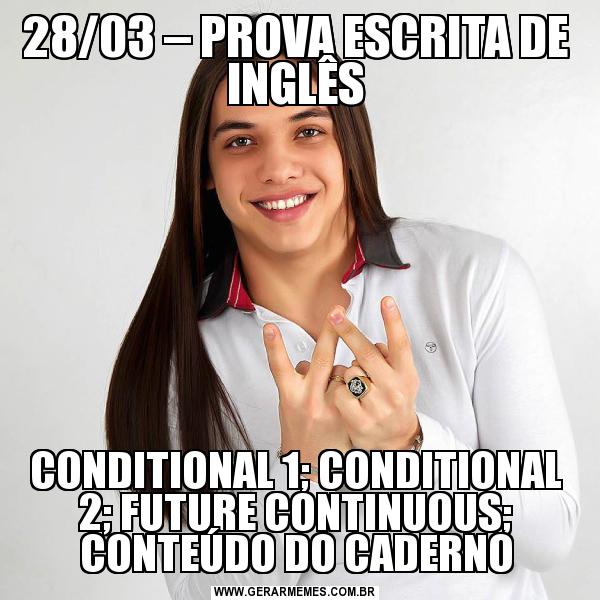 28/03 – PROVA ESCRITA DE INGLÊS CONDITIONAL 1; CONDITIONAL 2; FUTURE CONTINUOUS; CONTEÚDO DO CADERNO