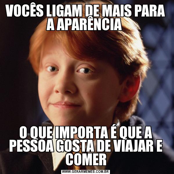 VOCÊS LIGAM DE MAIS PARA A APARÊNCIA O QUE IMPORTA É QUE A PESSOA GOSTA DE VIAJAR E COMER