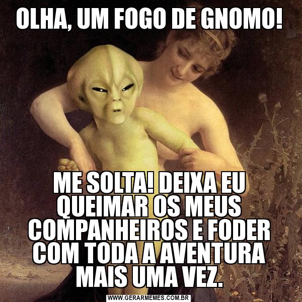 OLHA, UM FOGO DE GNOMO! ME SOLTA! DEIXA EU QUEIMAR OS MEUS COMPANHEIROS E FODER COM TODA A AVENTURA MAIS UMA VEZ.