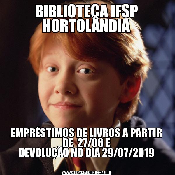 BIBLIOTECA IFSP HORTOLÂNDIA EMPRÉSTIMOS DE LIVROS A PARTIR DE 27/06 E DEVOLUÇÃO NO DIA 29/07/2019