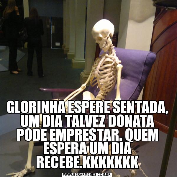GLORINHA ESPERE SENTADA, UM DIA TALVEZ DONATA PODE EMPRESTAR. QUEM ESPERA UM DIA RECEBE.KKKKKKK