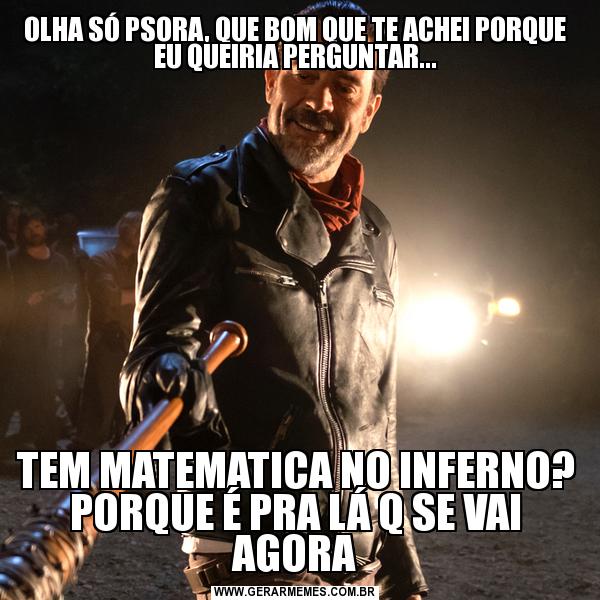 OLHA SÓ PSORA, QUE BOM QUE TE ACHEI PORQUE EU QUEIRIA PERGUNTAR... TEM MATEMATICA NO INFERNO? PORQUE É PRA LÁ Q SE VAI AGORA