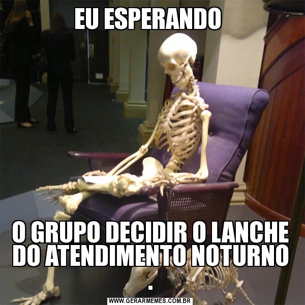 EU ESPERANDO O GRUPO DECIDIR O LANCHE DO ATENDIMENTO NOTURNO .