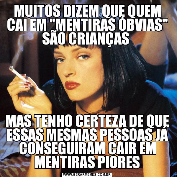 MUITOS DIZEM QUE QUEM CAI EM "MENTIRAS ÓBVIAS" SÃO CRIANÇAS MAS TENHO CERTEZA DE QUE ESSAS MESMAS PESSOAS JÁ CONSEGUIRAM CAIR EM MENTIRAS PIORES