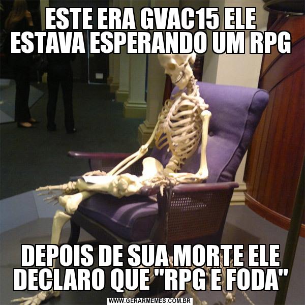 ESTE ERA GVAC15 ELE ESTAVA ESPERANDO UM RPG DEPOIS DE SUA MORTE ELE DECLARO QUE 'RPG E FODA'