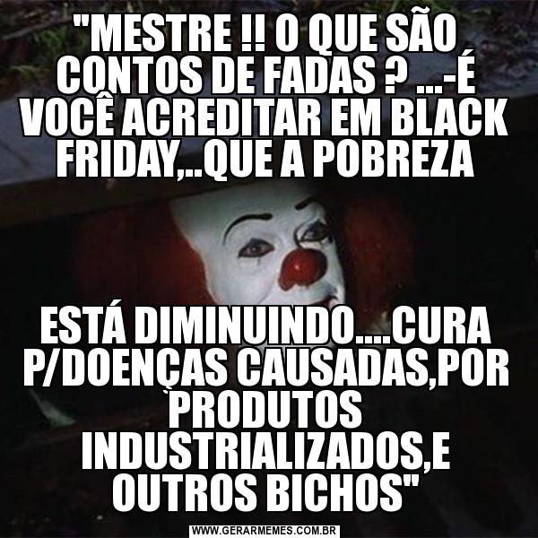 "MESTRE !! O QUE SÃO CONTOS DE FADAS ? ...-É VOCÊ ACREDITAR EM BLACK FRIDAY,..QUE A POBREZA ESTÁ DIMINUINDO....CURA P/DOENÇAS CAUSADAS,POR PRODUTOS INDUSTRIALIZADOS,E OUTROS BICHOS"
