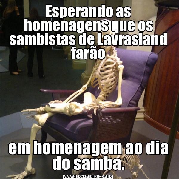 Esperando as homenagens que os sambistas de Lavrasland farão em homenagem ao dia do samba.